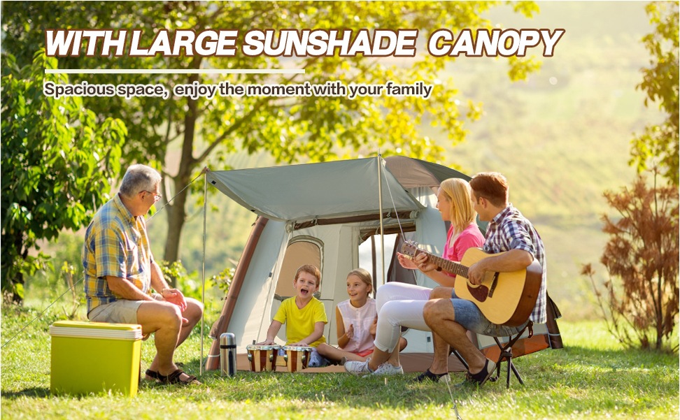 · 【Romslig plass, 2-4 person telt】: 82,7x82,7x67 tommer med utfoldet stor plass, kan pakkes i 25,2x16,1x12,2 tommer bærbar oppbevaringspose. Det oppblåsbare teltet har plass til 2-4 personer for samlinger, og gir deg og din familie eller venner god plass til å nyte en utendørsferie sammen lykkelig og enkelt.