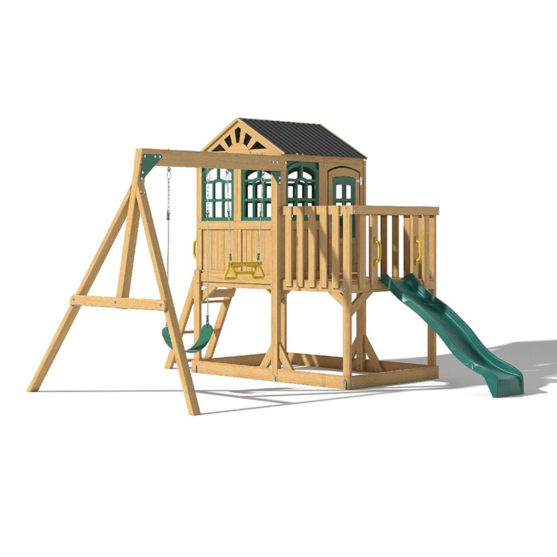 Som et premium tre, gjør Hemlocks harde tekstur, stabile fysiske egenskaper og utmerket holdbarhet det til et ideelt valg for møbler, konstruksjon og dekorasjon. Enten det er delikate utskjæringer, bærende strukturer eller hverdagsbehov, kan hemlock møte dem, noe som gjør det til det valgte materialet for mange håndverkere og designere.WidewaySwing-settet med høy linje er laget av 100% FSC-hemlock av høy kvalitet fra bærekraftig forvaltede skoger, hovedsakelig fordi treverket ikke splitter, har sterk naturlig værmotstand og er derfor motstandsdyktig mot trerot, og treverket behandles med et vannbasert fargestoff, som nesten ikke krever noe vedlikehold. Dette naturlige fargestoffet (uten kjemikalier) er miljøvennlig ogbarnsikker, noe som gjør det til det perfekte valget for barns svinger.