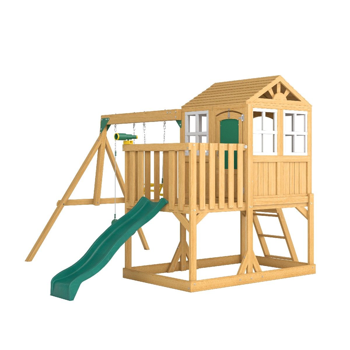 AAW019-lekeplassen er laget av høykvalitets FIR-tre, noe som sikrer naturlig, miljøvennlig og holdbar ytelse. Den integrerer flere spillfunksjoner inkludert lysbilder, klatrestrukturer og plattformer - perfekt for å forbedre barns fysiske aktivitet og sosiale interaksjoner. Alle trekomponenter er jevnt ferdige for å forhindre splinter og sikre sikkerhet under spill. Ideell for bruk i barnehager, parker, boligsamfunn og bakgårdsplasser. Med utmerket værmotstand og antikorrosjonsbehandling tilbyr denne lekeplassen et langvarig og naturvennlig utendørs lekemiljø.